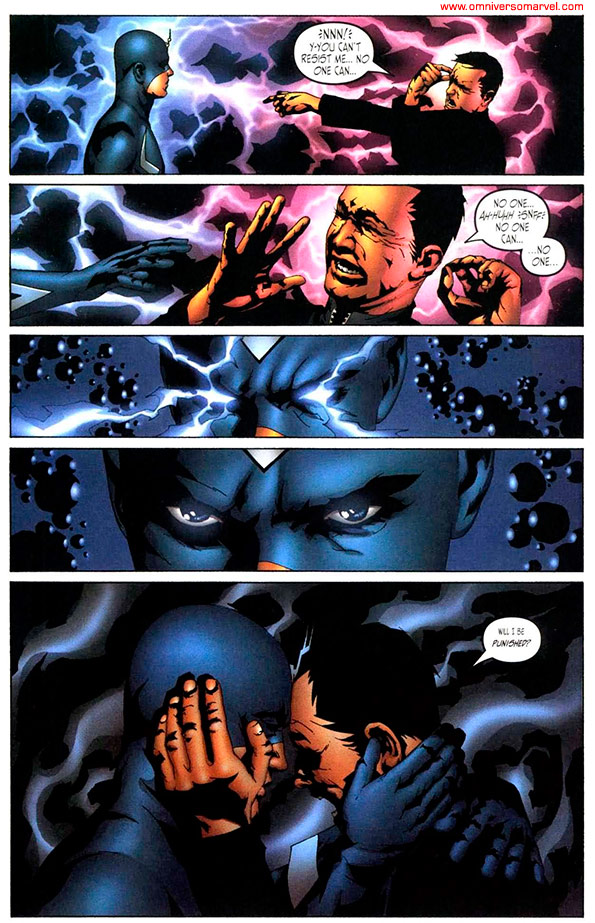 Black Bolt ha demostrado poder controlar también la voluntad, aun que como lo hace es una incógnita, pero tiene cierto control mediante su flujo de electrones sobre la voluntad de las personas se ignora el alcance de esta habilidad. InH:v1:1. [Imagen].