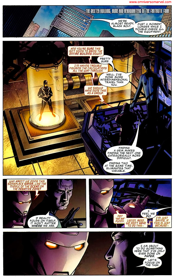 Black Bolt usaría un rayo de electrones para activar el ascensor privado de los 4 Fantásticos. MTIO:v1:4. [Imagen].