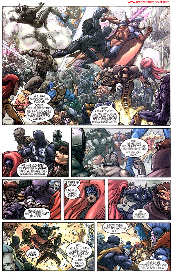 * De Gladiador basta decir que si Marvel tenía un Superman Pre-crisis, aquel fue Gladiador. Un asesino de planetas a base de pura fuerza y potencia bruta, sus golpes pueden destruir mundos. MCP:v1:49. [Imagen1][Imagen2].