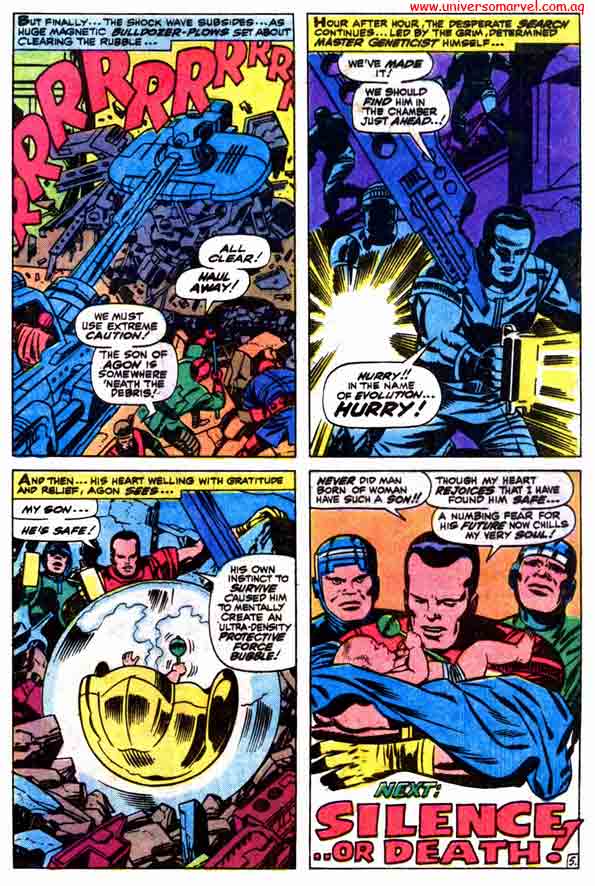 Recién nacido, su propio instinto de supervivencia lo harían crear una ultra densa burbuja de fuerza protectora. T:v1:148. [Imagen].