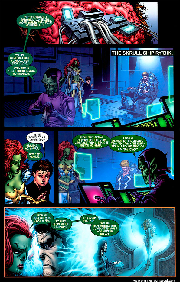 Los Skrull estudiando los poderes de Black Bolt, lo considerarían como la más poderosa arma que su imperio pudiera desatar. SI:v1:1. [Imagen1][Imagen2][Imagen3].