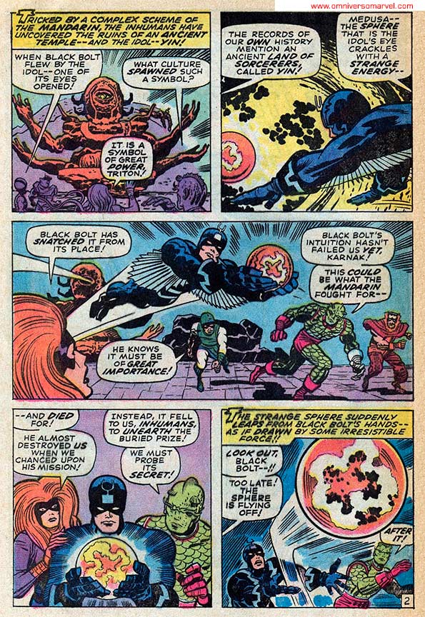 Por antiguos corredores y cámaras Black Bolt seguiría veloz a una esfera cuya velocidad era comparable a la de un misil. AA:v1:4. [Imagen1][Imagen2].