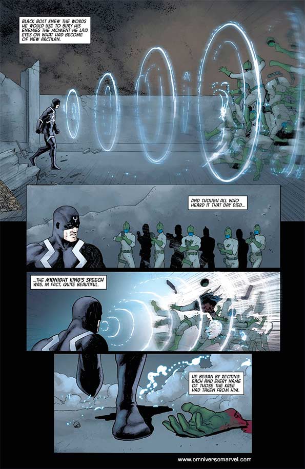 Black Bolt ha entrado así en guerras que involucran a los más grandes imperios del universo como lo son los Kree, los Skrull y los Shi’ar.