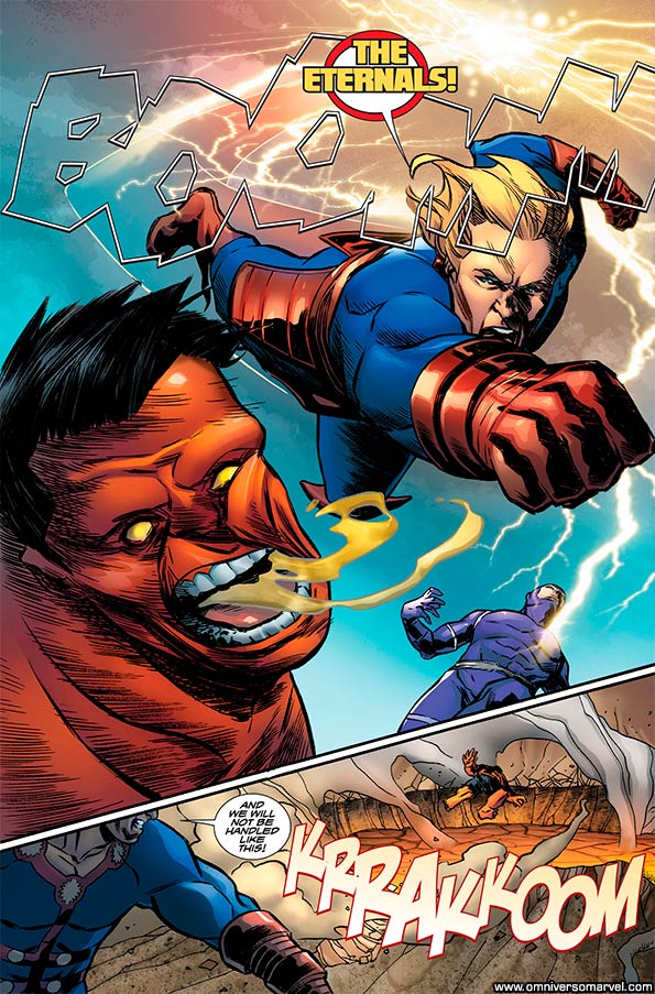 * Ikaris es uno de los más fuertes Eternals, que ha demostrado poder mantener un combate directo contra seres como Red-Hulk (H:v2:49) o Thanos (E:v5:2). [Imagen1][Imagen2][Imagen3][Imagen4].