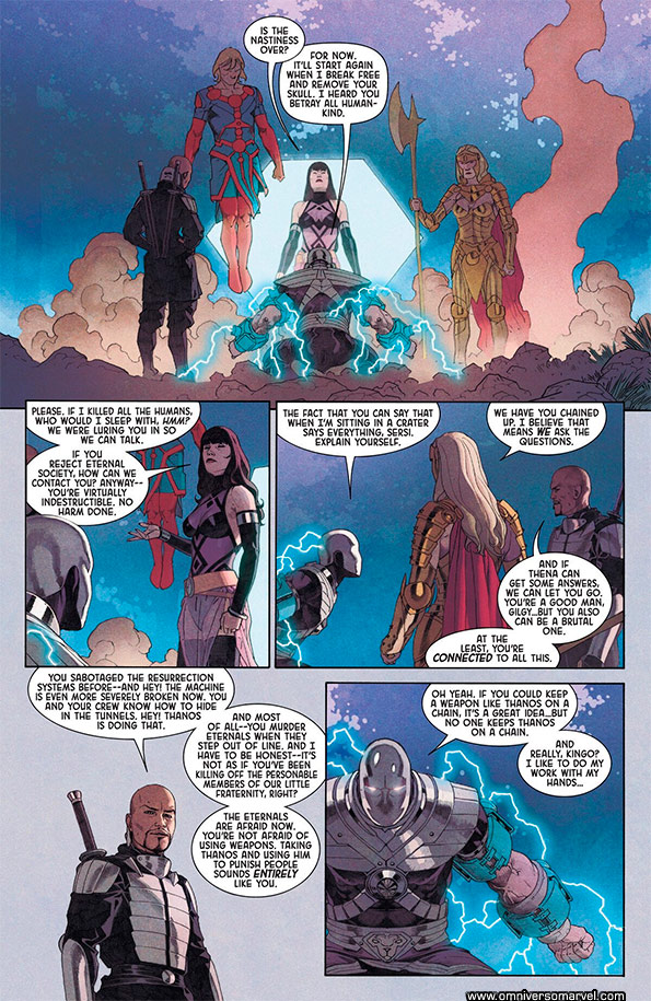 Cuando Thena fue gobernante de los Eternos, Ikaris y Gilgamesh fueron capaces de invocar una Uni-Mind. ¿Cómo lo hicieron si ninguno era el Prime-Eternal? ¿O es otro cambio impulsado en la alteración de la realidad por Sprite?. Ikaris dice que él no hubiera sido capaz de formarla sin la ayuda de Gilgamesh (The Forgotten-One), pero la pregunta persiste. EF:v1:1. [Imagen1][Imagen2][Imagen3][Imagen4].
