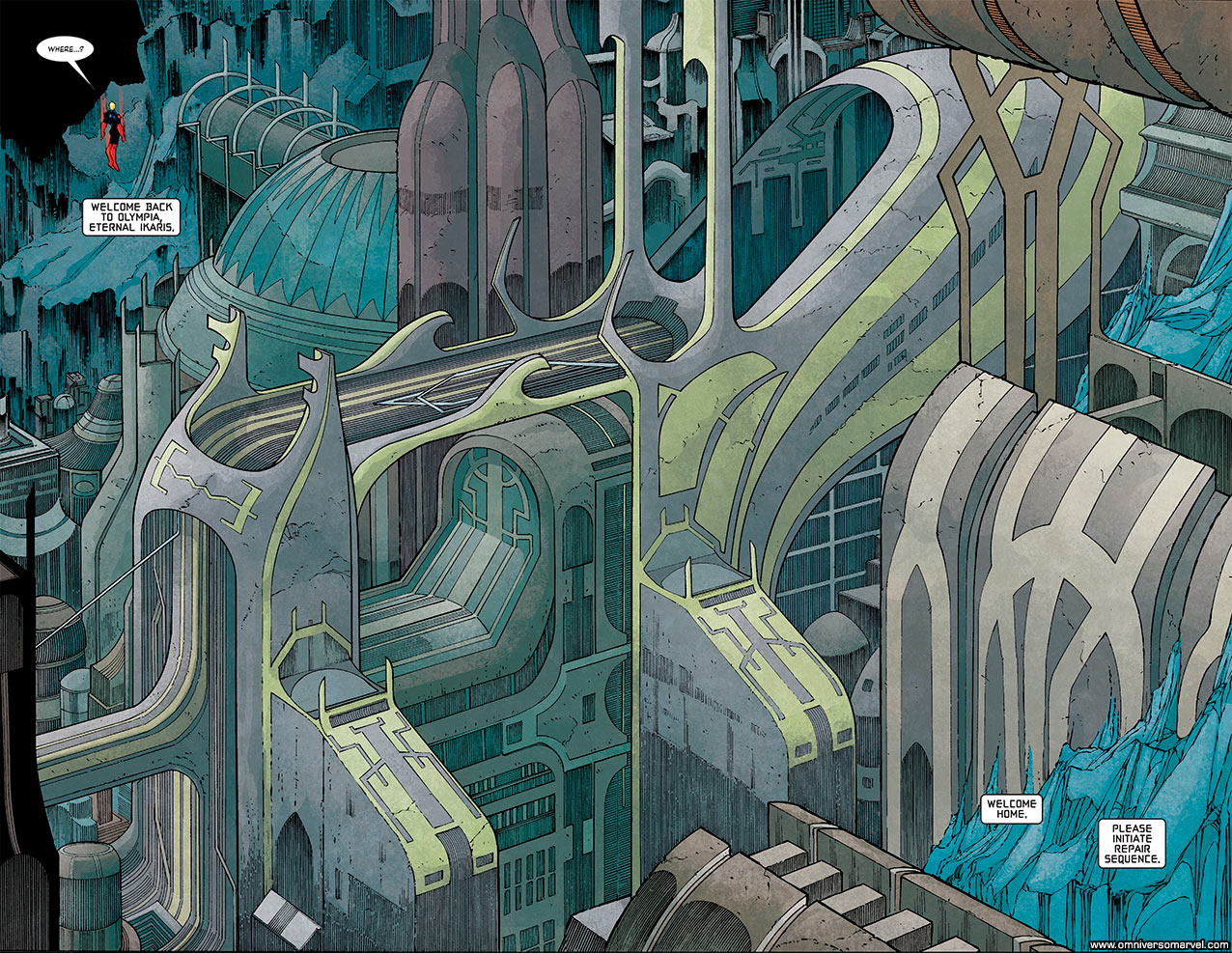 * En el retcon de la guerra entre Zuras y A’lars hace 200,000 años vemos que A’lars llama Ikaris a “Ikaris”. Cuando en la continuidad normal él tomó ese nombre hace unos 3500 años durante el periodo de la Creta Minoica. Esto más que un retcon pienso que debe interpretarse como que la Máquina (que es la que narra los acontecimientos) usó el nombre con el que conoce a Ikaris, y que su nombre real este perdido hasta para los archivos de la Máquina o que la Máquina simplemente uso el nombre con el que está más familiarizado.