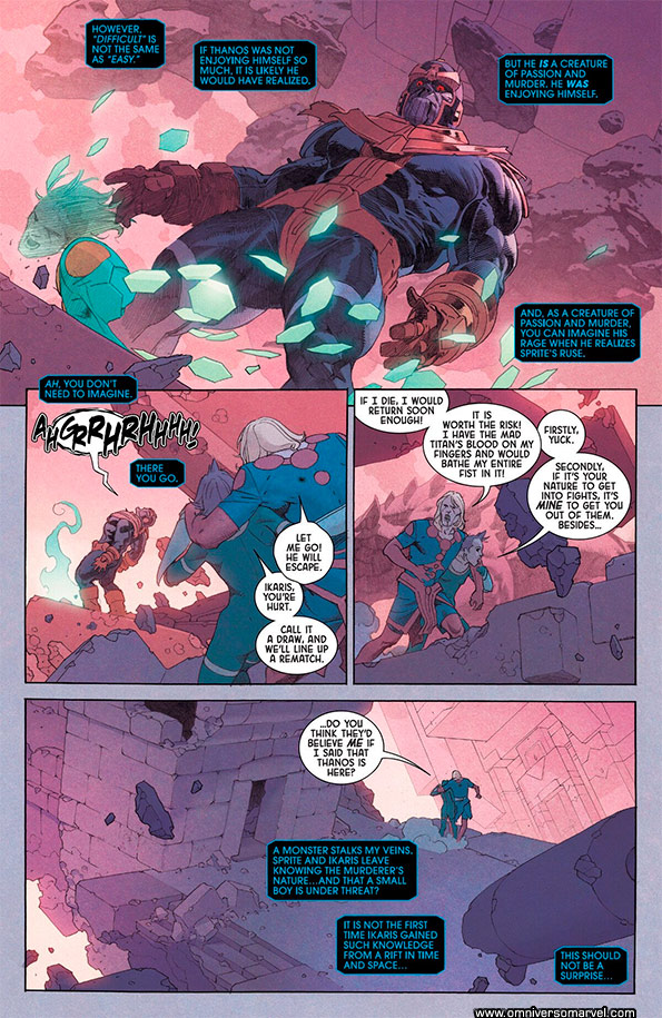 El comic no muestra la transferencia del poder de Zuras a Ikaris, como sí lo vimos en el caso de Thena, pero asumimos que debió haber sucedido después de la derrota de Thena.